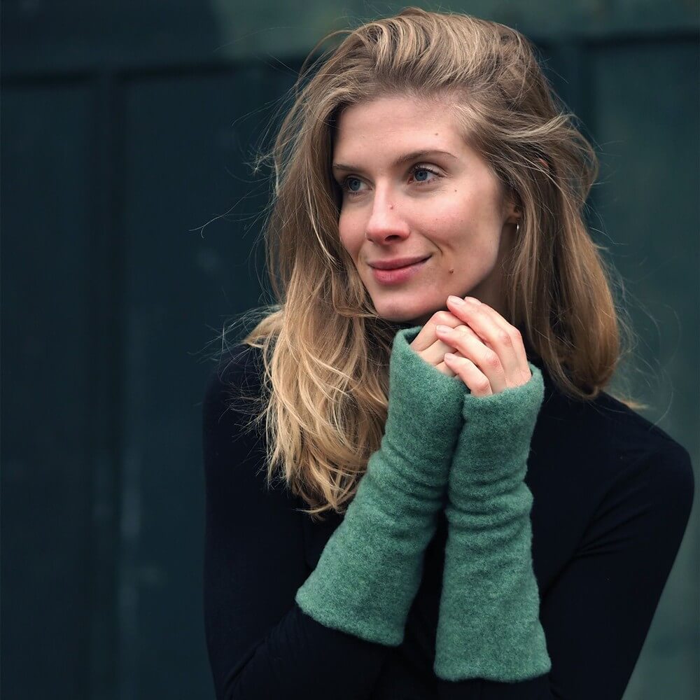 Soe meriinovillafliis. Ühekordne paksem, vastupidav kangas. Hoiab sooja, samas laseb kätel hingata. Ei muutu naha vastas külmaks ka niiskena. Kanga omaduste kohta saad rohkem lugeda meie poe kanga omaduste kirjeldusest.