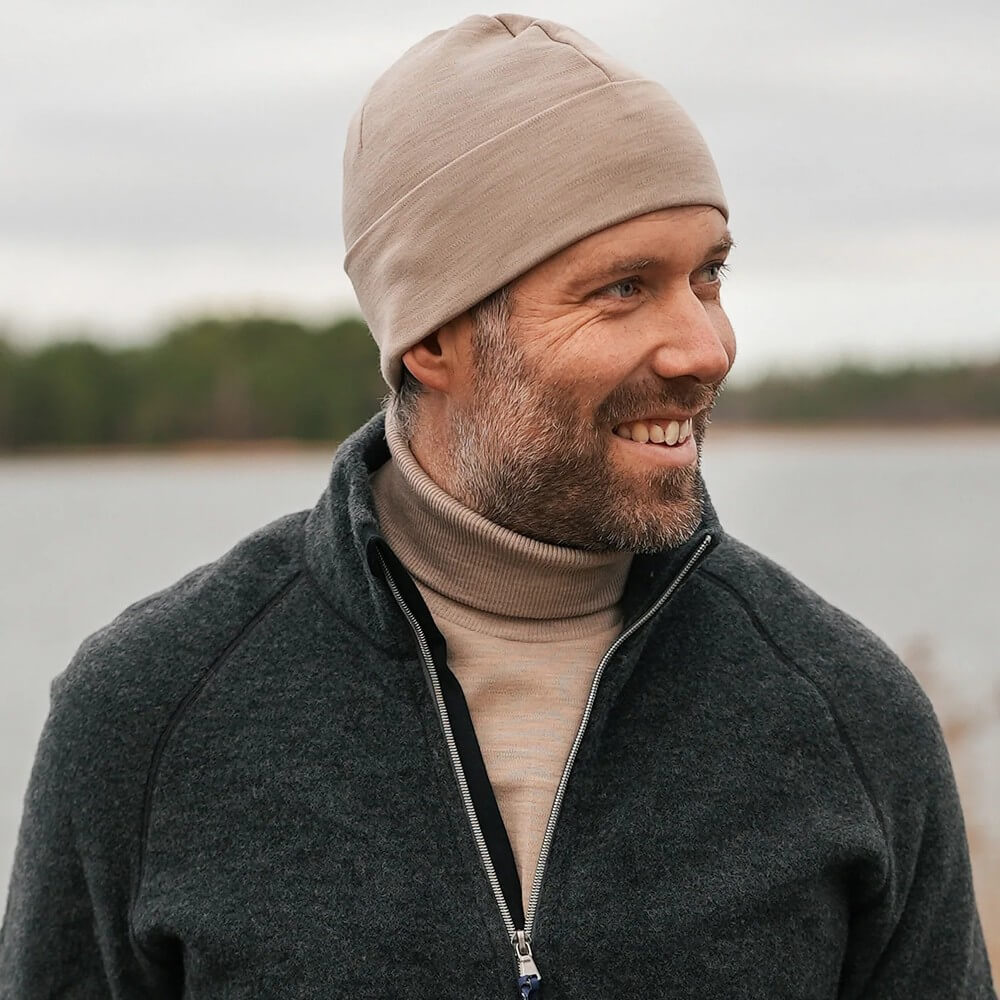 Tihedast, elastsest kangast kahekordne müts. Tagasikeeratava servaga.